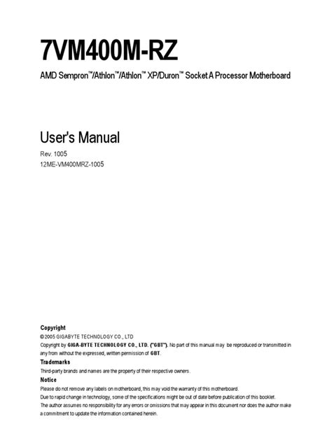 File Name: Gigabyte 7vm400m Rz User Guide.pdfSize: 5738 KBUploaded: